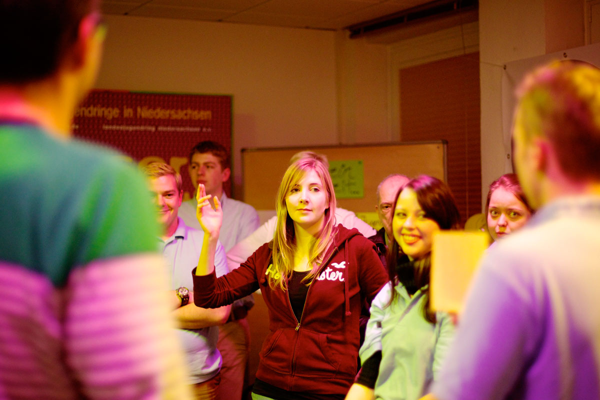 Gleich zu Beginn des X=Meetings geht es um Förderung und Unterstützung für die Jugendarbeit – und Stefan Birkner muss beim Quiz „Wer wird Mister X=?“ sein Wissen über die niedersächsische Jugendarbeit unter Beweis stellen. Freimütig bekennt sich der Umweltminister dazu, dass er die Rahmenbedingungen der Jugendarbeit nicht in aller Tiefe kennt, doch er ist sehr interessiert, tiefer einzutauchen und lässt sich von den knapp 20 jungen Menschen aus verschiedenen Jugendverbänden aktuelle Herausforderungen und Beispiele gelingender Jugendarbeit aufzeigen. Er ist sichtlich interessiert und begeistert und sichert zu, sich auch zukünftig für eine wenigstens gleichbleibende finanzielle Förderung einzusetzen.