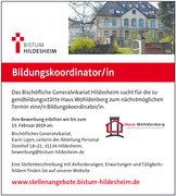 Bischöfliches Generalvikariat, Karin Lojen, Leiterin der Abteilung Personal, Domhof 18-21, 31134 Hildesheim, Mail: bewerbung{auf}bistum-hildesheim{punkt}de