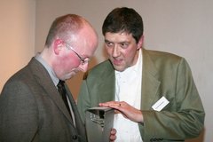 Martin Richter überreichte seinem Nachfolger symbolisch einen leeren Aktenordner, damit dieser darin seine neuen Ideen für die Arbeit sammeln und seinen eigenen Stil finden könne.