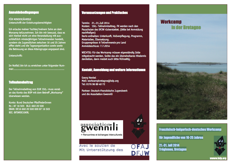 Interkulturell- und Naturbegeisterte aufgepasst: Französisch-bulgarisch-deutsches Workcamp für Jugendliche von 16-25 Jahren vom 21.-31. Juli 2014 in Tréglonou, Bretagne[mehr]