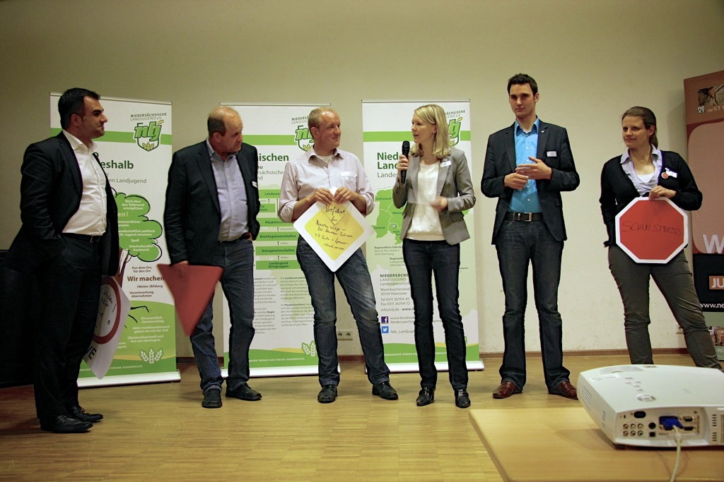 Ein Geschicklichkeitsspiel mit einer landwirtschaftlichen Maschinensteuerung, ein Ernährungsquiz, handwerkliches Geschick und Aktionen rund um das Thema „Jugendpolitik”, das waren nur einige „Stationen”, die die Gäste aus Politik, Verwaltung und den Mitgliedsverbänden des Landesjugendring Niedersachsen e.V. (LJR) bei den 36. „feier-abend-gesprächen” des LJR am 29.05.2013 in Hannover erwarteten. In diesem Jahr übernahm die Niedersächsische Landjugend (NLJ) die Ausrichtung des parlamentarischen Abends der Mitgliedsverbände des LJR.