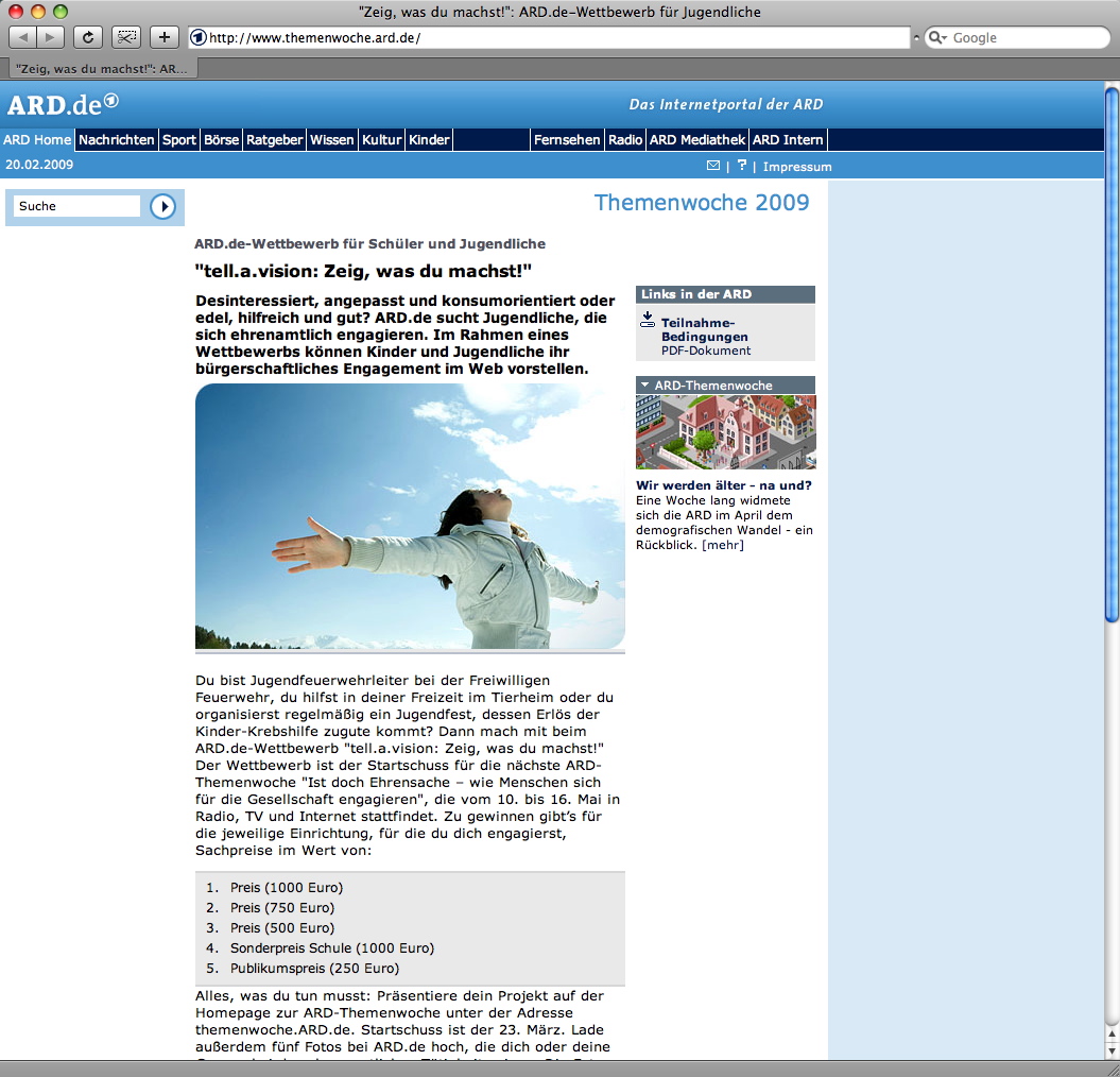 Desinteressiert, konsumorientiert, faul - oder doch engagiert, hilfreich und gut? ARD.de sucht Jugendliche, die sich ehrenamtlich betätigen.[mehr]