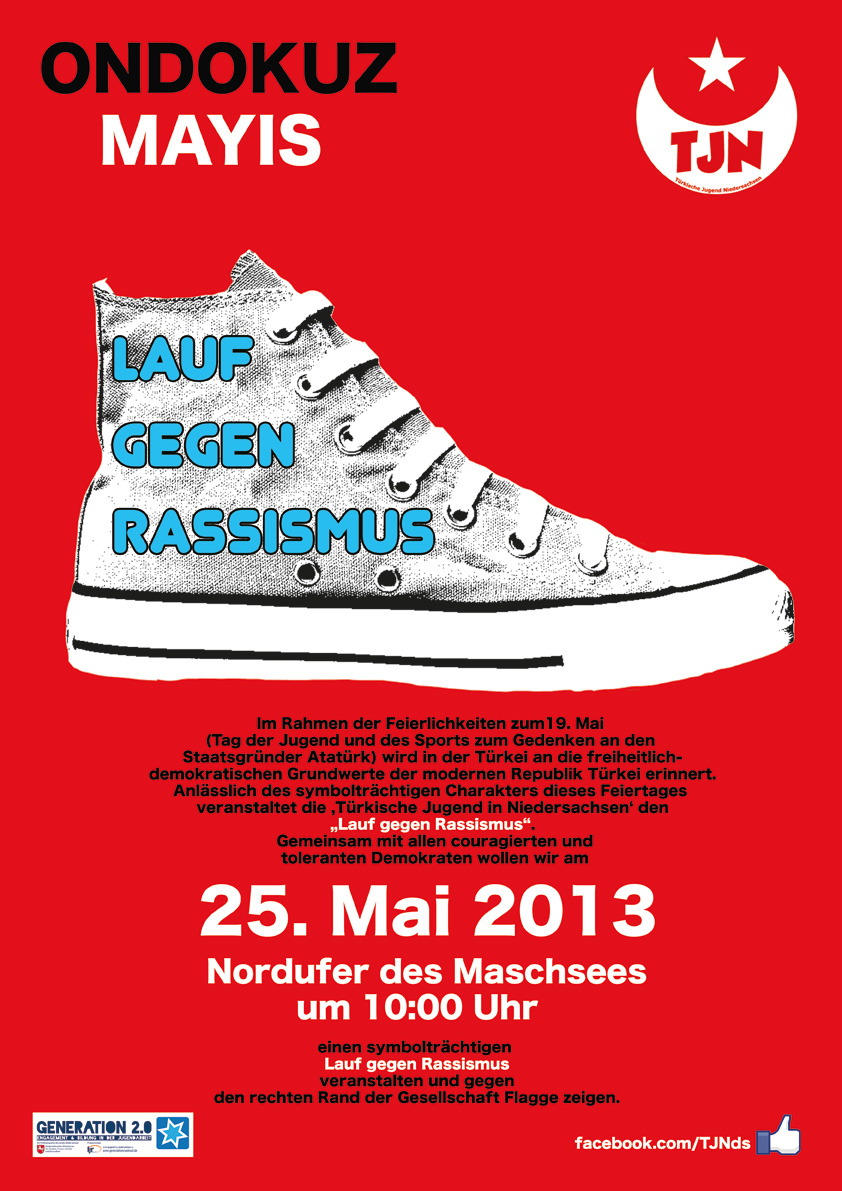 Die Türkischen Jugend Niedersachsen veranstaltet anlässlich des 20. Jahrestages der Solingen Morde am 29. Mai, einen symbolischen Lauf gegen Rassismus. [mehr]