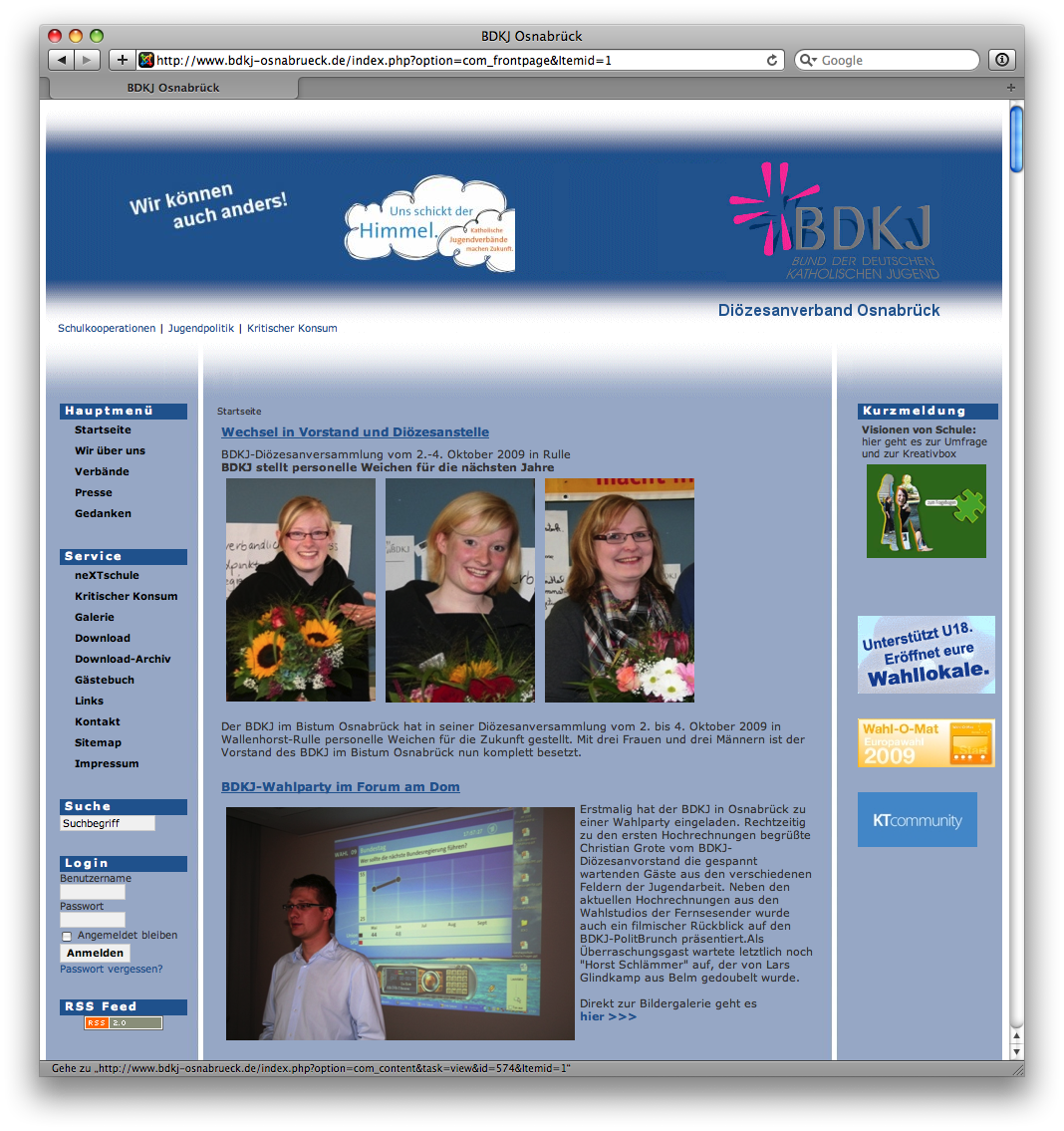 Der Bund der Deutschen Katholischen Jugend (BDKJ), Diözesanverband Osnabrück, schreibt zum 1. Januar 2010 die Stelle eines/einer Referenten/-in für Projektarbeit aus.[mehr]