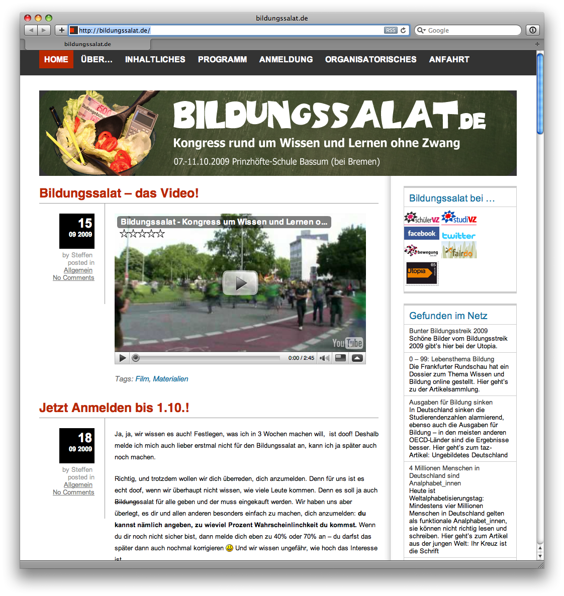 Der Kongress rund um Wissen und Lernen ohne Zwang - Das Herbstspektakel 2009 von JANUN vom 07.10.2009 11.10.2009 in der Prinzhöfte-Schule Bassum[mehr]