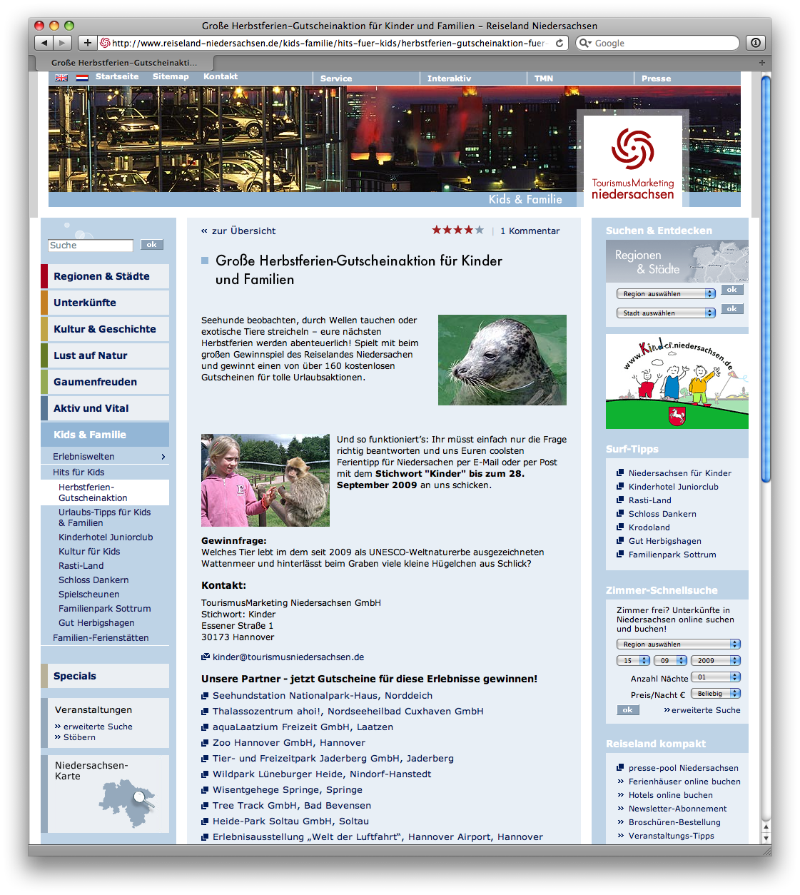 Seehunde beobachten, durch Wellen tauchen oder exotische Tiere streicheln Kinder und Jugendliche können jetzt für die Herbstferien 2009 kostenlose Ferienaktionen gewinnen![mehr]