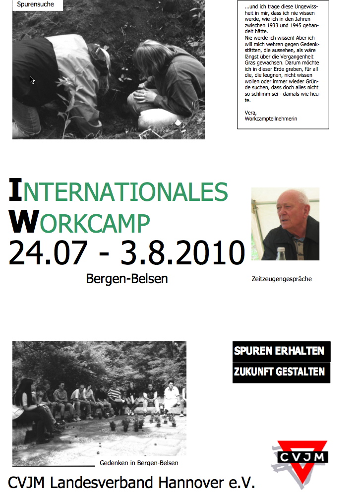 Jedes Jahr veranstaltet der CVJM-Landesverband Hannover internationale Workcamps für Jugendliche auf dem Gelände des ehemaligen Konzentrationslagers Bergen-Belsen. Im Laufe der Jahre hat sich durch den Einsatz Jugendlicher viel...[mehr]