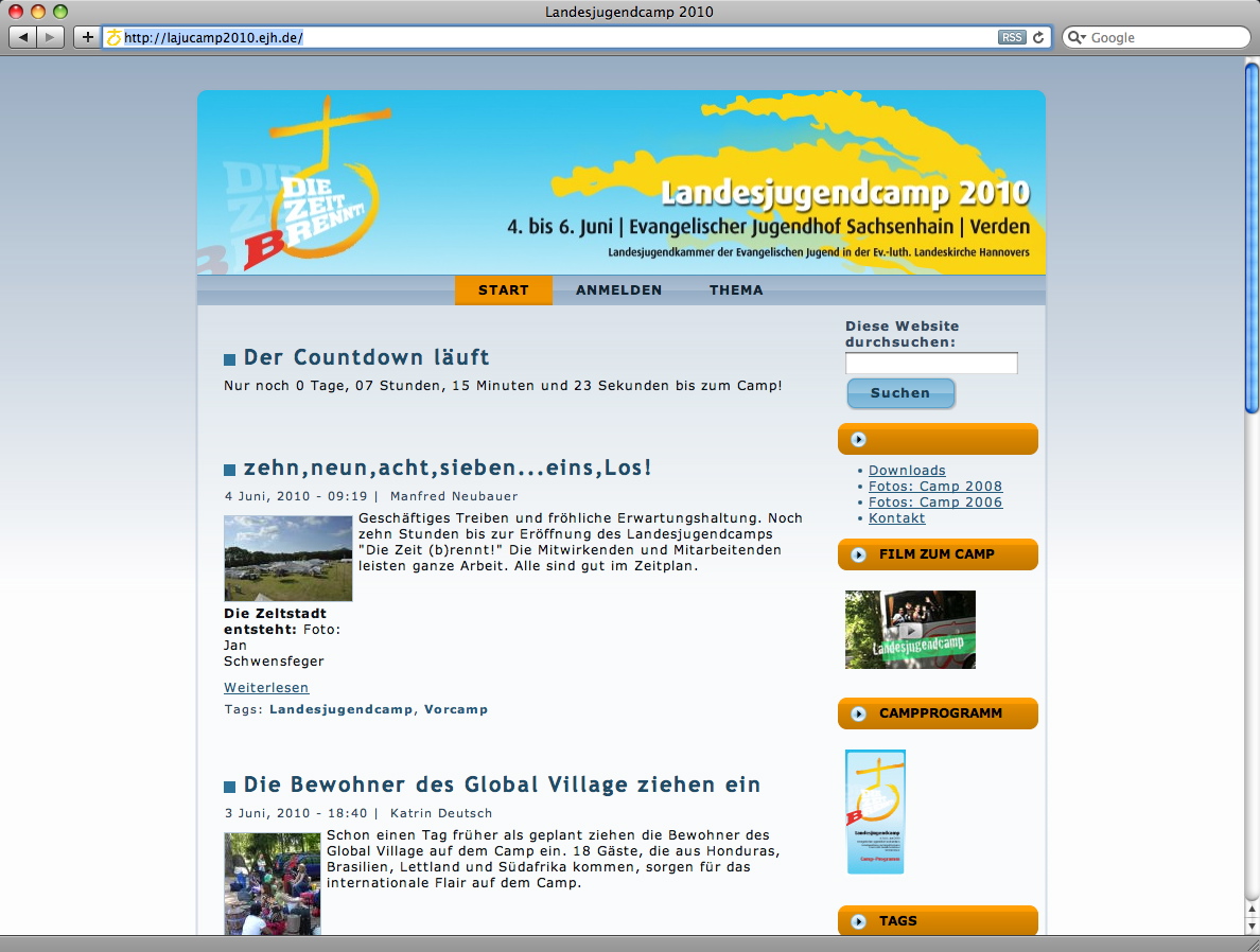 Der Countdown bis zur Eröffnung läuft. Geschäftiges Treiben und fröhliche Erwartungshaltung. Noch zehn Stunden bis zur Eröffnung des Landesjugendcamps "Die Zeit (b)rennt!" Die Mitwirkenden und Mitarbeitenden leisten ganze Arbeit....[mehr]