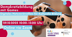 Weitere Informationen, Ansprechpartnerinnen und Anmeldung sind hier kultur-macht-stark.lkjnds.de/unsere-veranstaltungen/demokratiebildung-mit-games.html hinterlegt.