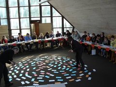 Wolfgang Blaffert, Referent im Landesjugendpfarramt und da auch für Jugendforschung zuständig, stellte wesentliche Ergebnisse der Studie "Kompetenzerwerb im freiwilligen Engagement" von Wiebken Düx und Erich Sass vor und bat zunächst die Mitglieder des Vertretungsgremiums der Evangelischen Jugend ihre spontanen Einfälle unter dem Titel: "Ehrenamt ist für mich " auf Karten zu schreiben. Das Ergebnis war ebenso vielfältig wie aussagekräftig. Mehr als 250 Aussagen dokumentierten konkrete Erfahrungen ehrenamtlicher Tätigkeiten: Geselligkeit, Spaß, Anregungen, Gemeinschaftsgefühl, andere Menschen kennenlernen, Belastung und Bereicherung, Emotionen, Kampf um Anerkennung, Stolz, innere Zufriedenheit, Mittel zum Zweck, Zeit, aber auch Partizipation, Wertschätzung, Freistellung, Mitbestimmung, Zuverlässigkeit, Verbindlichkeit, Motivation, Erwartungen, Abgrenzung lassen erahnen welche Chancen Jugendliche beispielsweise in ihrem Engagement in der Jugendarbeit nutzen.