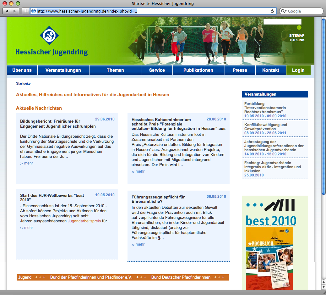 Beim Hessischen Jugendring e. V. Arbeitsgemeinschaft hessischer Jugendverbände mit Sitz in Wiesbaden, ist zum 1. Oktober 2010 die Stelle eines/einer[mehr]