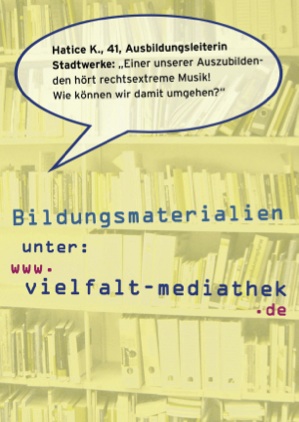 Unter www.vielfalt-mediathek.de können Multiplikator_innen aus Jugendverbänden, Lehrkräfte, Eltern, Jugendliche, Verantwortliche in Betrieben, Politik oder Verwaltung Materialien ausleihen oder herunterladen.