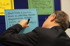 Und Stephan Weil packt aus – er erzählt von seiner Kindheit, seiner (jugend-) politischen Sozialisation bei der Evangelischen Jugend und den Falken, davon, dass er als Kind seine Zeit am liebsten auf dem Fußballplatz verbracht hat und heute vielleicht lieber einen Schlafanzug statt eines Smokings tragen würde. Neben dem Menschen Stephan Weil steht aber bei diesem Treffen der Veranstaltungsreihe x=meetings des Landesjugendrings Niedersachsen vor allem auch der Politiker und Spitzenkandidat im Rampenlicht.