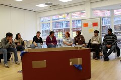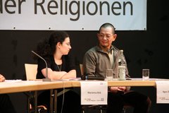 Ein Highlight war der fachpolitische Abend im Haus der Religionen Hannover, bei dem die Tagungsteilnehmer(innen) von Dr. Wolfgang Reinbold, als 1. Vorsitzender des Hauses und Cornelia Dassler, Landesjugendpastorin und aej-Vorstandsmitglied, begrüßt wurden. Dr. Dursun Tan, Referatsleiter in der Abteilung Integration des Niedersächsischen Sozialministeriums sprach ein Grußwort, bevor eine Podiumsdiskussion praktische Einblicke in die Kinder- und Jugendarbeit unterschiedlicher Religionsgemeinschaften bot. Dabei tauschten sich eine Jüdin, ein Buddhist, eine Bahai und eine Muslima über Fragen der Beteiligung von jungen Menschen in ihren Gemeinden und über Möglichkeiten des interreligiösen Dialogs aus.