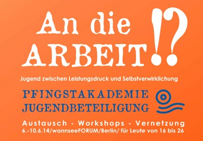 Das wannseeForum Berlin, lädt Jugendliche zwischen 16 und 26 Jahren vom 6.-10. Juni 2014 nach Berlin zur „14. Pfingstakademie Jugendbeteiligung“ ein![mehr]