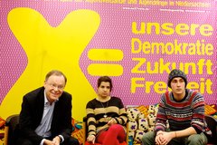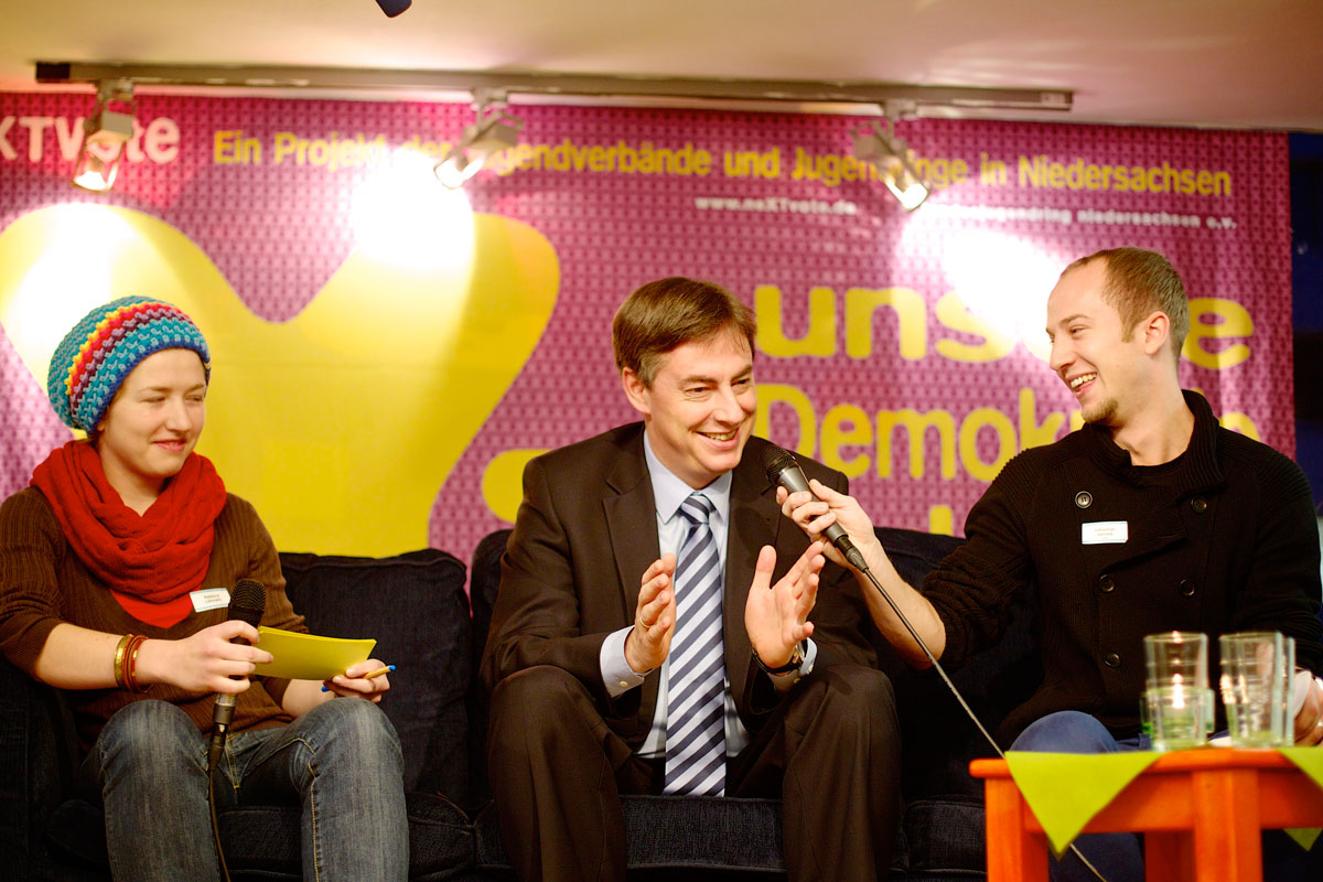 Bei den X=Meetings hatten junge Menschen die Gelegenheit, mit jeweils einer/m Spitzenkandidatin/en von CDU, SPD, FDP, Bündnis 90/Die Grünen, DIE LINKE und Piratenpartei ihre Anliegen zu diskutieren. Das Methodensetting der X=Meetings hat dafür gesorgt, dass sich David McAllister, Stephan Weil, Stefan Birkner, Anja Piel, Manfred Sohn und Meinhard Ramaswamy nicht hinter Phrasen verstecken konnten, sondern dass sie die Anliegen der Jugendlichen ernst genommen und sich dazu positioniert haben. So kam es zu einem lockeren und trotzdem ernsthaften Dialog auf Augenhöhe, der allen Beteiligten viel Spaß gemacht hat.