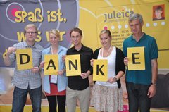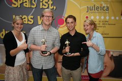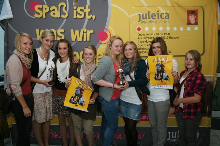 Die Nervosität war den beiden Filmemachern zu Beginn des Abends deutlich anzumerken. Bei stehenden Ovationen betraten Droste und Westermann die Bühne und begrüßten das Publikum. Anschließend lobte die stellvertretende Bürgermeisterin Stefanie Kortekamp in einem Grußwort das ehrenamtliche Engagement und hoffte, dass der Film für das Ehrenamt begeistern könne. Auch Wolfgang Gerdes, der stellvertretende Superintendent des Kirchenkreises Bramsche, war von der Idee begeistert und sagte, er sei »super gespannt« auf den Film. Bevor es losging, hatten die Hauptdarsteller aber noch eine Ehrung durchzuführen: Kirchenkreisjugendwart Johannes Kuhnert-Kohlmeyer, der den Gruppenleitergrundkurs leitete, wurde der Juleica-Oscar für sein Engagement in der Evangelischen Jugend überreicht.