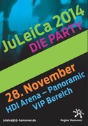 Wir möchten uns bei Dir für Dein ehrenamtliches Engagement bedanken und laden Dich gemeinsam mit mehreren hundert Aktiven am Freitag, 28. November 2014, von 18.00 bis 21.30 Uhr, zur »JULEICA 2014 DIE PARTY« in die HDI Arena – Panoramic VIP Bereich ein. Wir freuen uns auf Dich!