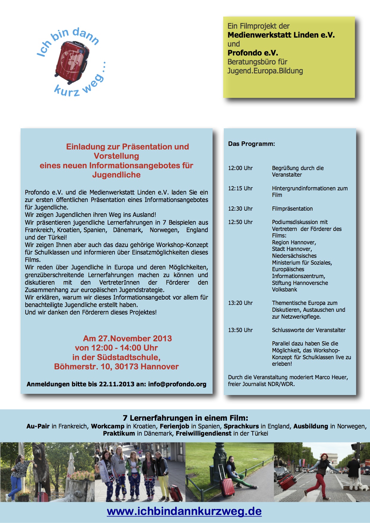 Profondo e.V. und die Medienwerkstatt Linden präsentieren am 27.11.2013 von 12:00 - 14:00 Uhr in der Südstadtschule Hannover (Böhmerstr. 10, 30173 Hannover) einen Film mit dem dazugehörigen Informationsmaterial und...[mehr]