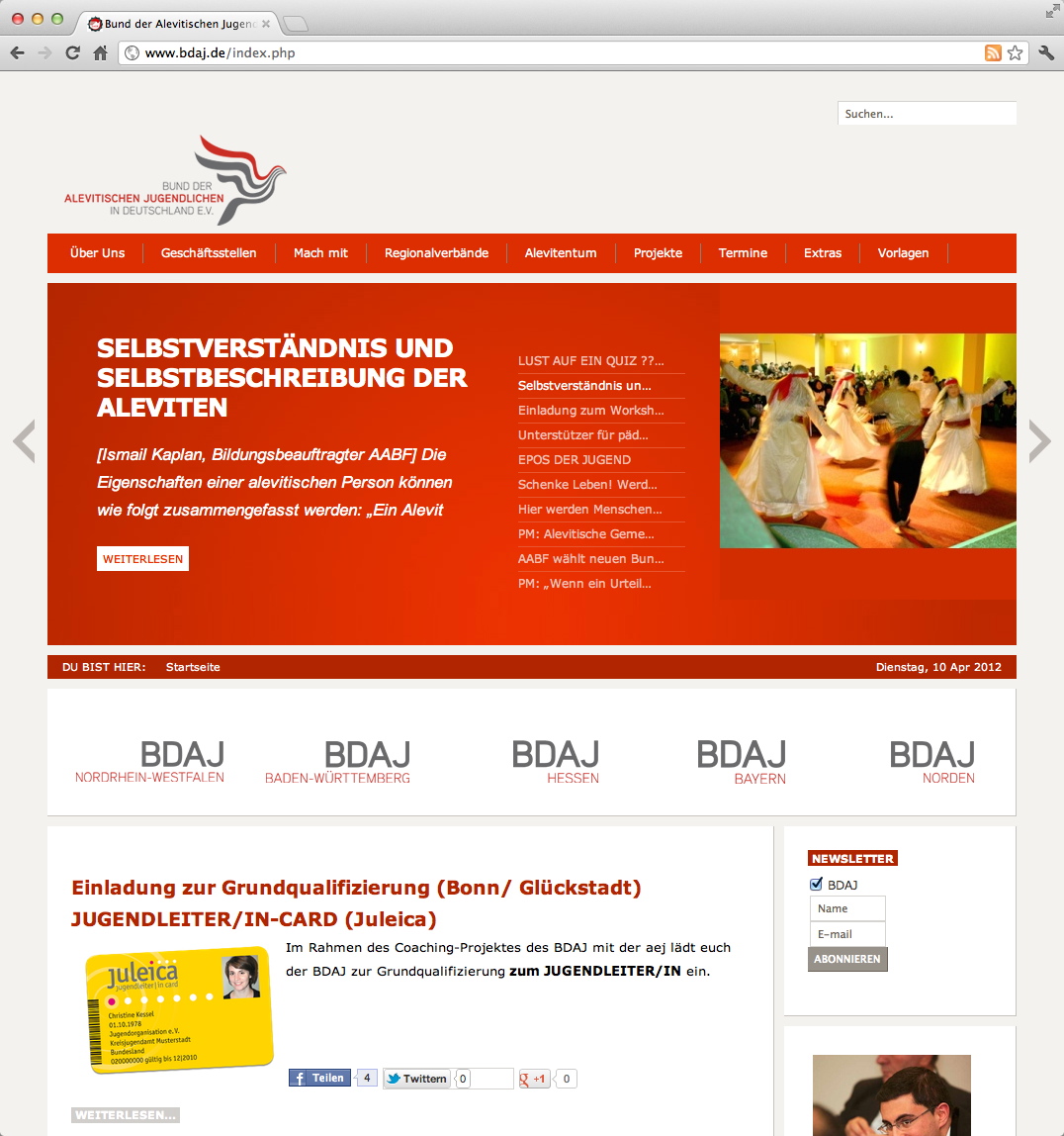 Für das im März 2012 gestartete Kooperationsprojekt „Go together – Partizipation, Integration und interkulturelle Öffnung“ suchen die drei Kooperationspartner Bayerischer Jugendring, Alevitische Jugend in Bayern und Bayerisches...[mehr]