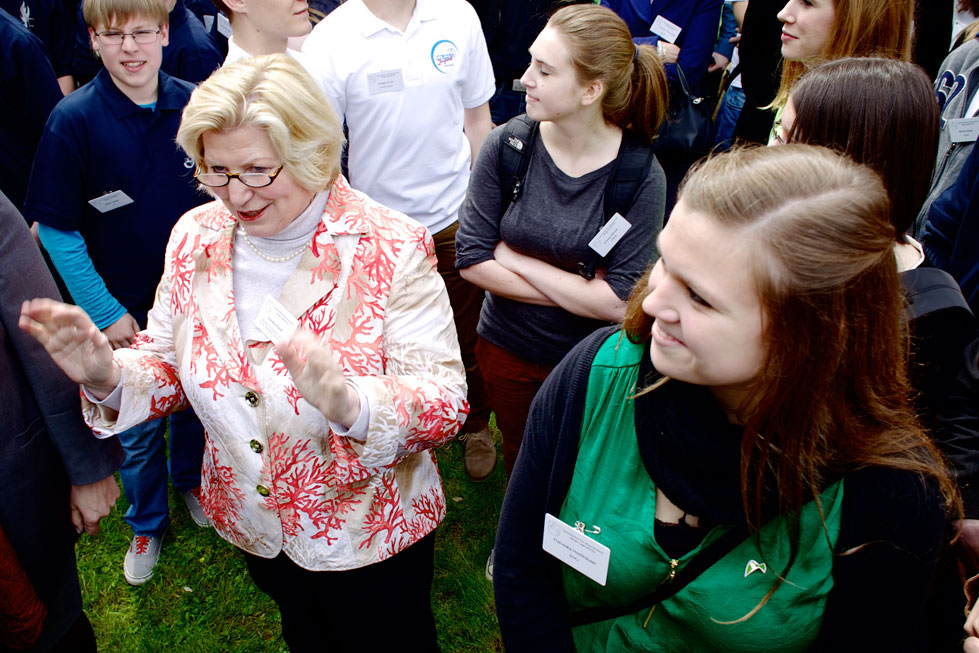 Als eine der rund 150 Jugendlichen nahm sie stellvertretend für die 50.000 engagierten Jugendleiter-innen in ganz Niedersachsen die Einladung von Ministerpräsident Stephan Weil am 24.05.2013 ins Gästehaus der Landesregierung nach Hannover gerne wahr.