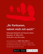 Eine Veranstaltung von ARBEIT UND LEBEN Nds. in Kooperation mit dem Institut ISTORECO, Reggio Emila, dem DGB-Bezirk Niedersachsen – Bremen – Sachsen-Anhalt, der DGB-Jugend und der IGS Linden.