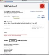 Salzgitter/Berlin Die Aktion jmstv-ablehnen.de konnte am Wochenende eine neue Zielmarke feiern. Über 10.000 Menschen haben sich gegen die Novelle des Jugendmedienschutz-Staatsvertrags (JMStV) ausgesprochen. Die Politik in NRW muss nun handeln und den Vertrag in der aktuellen Fassung ablehnen!