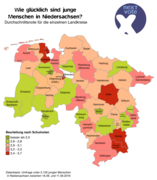 Grundsätzlich sind die jungen Menschen in Niedersachsen zufrieden mit ihren Gemeinden. Gut schneiden auch die nichtkommerziellen Freizeitangebote der Jugendverbände und die Sportmöglichkeiten ab; diese werden im landesweiten Durchschnitt jeweils mit 2,6 bewertet; deutlich schlechter werden hingegen die kommerziellen Freizeitangebote (Kino, Konzerte, Bistros,...) beurteilt.