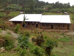 Nachmittags holen mich Flavien und Antonios ab. Wir fahren mit einem Taxi an den Stadtrand durch Essence und Panzi zum Neubau „unserer“ Schule „Tunza la Mayatima“. Das nagelneue Gebäude steht in einem Tal, umgeben von Bananenhainen. Trotz Finanzierunghilfe durch das deutsche Entwicklungsministerium hat das Geld leider nicht ausgereicht. Fussboden und Fenster sind noch nicht installiert und auch die große Latrine ist erst zur Hälfte fertig. Aber viele Kongolesen leben in solchen Provisorien und warum nicht unsere Schule? Diese schon seit Oktober letzten Jahres. Trotzdem sind alle hochzufrieden, weil auch dieses Provisorium sehr viel komfortabler ist als die alte Baracken- und Zeltschule. Da außerdem die Einkünfte der Ziegelei in Nyangezi der Schule zugute kommen sollen, machen wir uns auch nicht allzu viele Sorgen deswegen. Und die allerschönsten Bodenplatten werden jetzt da in Nyangezi hergestellt. So wird sich das Warten lohnen.
