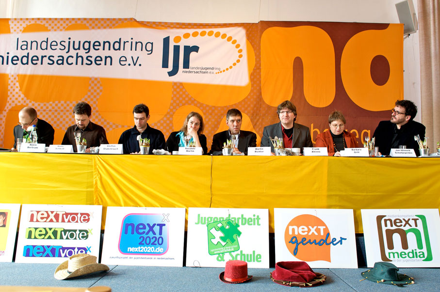 Am Samstag, den 07.03.2009 diskutierten die Vertreter-innen der Landtagsfraktionen aus fünf Landtagsausschüssen auf Einladung des Landesjugendrings Niedersachsen e.V. gemeinsam mit Vertreter-inne-n der niedersächsischen Jugendverbände über Möglichkeiten zur Verbesserung der Arbeit ehrenamtlich Engagierter in der Jugendarbeit. Der aktuelle bundesweite Juleica-Sachstand und die kürzlich gemeinsam mit der Sozialministerin Mechthild Ross-Luttmann gestartete Juleica-Kampagne in Niedersachsen wurden zum Anlass genommen, dem freiwilligen Engagement in der Jugendarbeit im Rahmen der 32. Vollversammlung im Ökumenischen Kirchencentrum der Ev.-luth. Bonhoeffer-Gemeinde in Hannover-Mühlenberg eine breitere inhaltliche Debatte zu widmen.