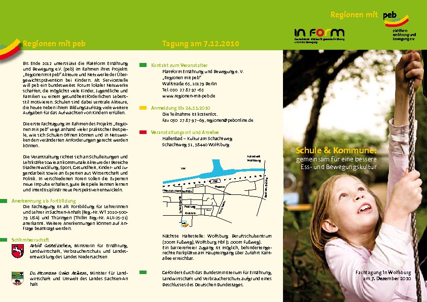 Mit der bundesweiten Kampagne »Regionen mit peb« unterstützt die Plattform Ernährung und Bewegung e.V. (peb) gesellschaftliche Veränderungsprozesse, mit dem Ziel, Kindern einen gesunden Lebensstil zu vermitteln. Um dies zu...[mehr]