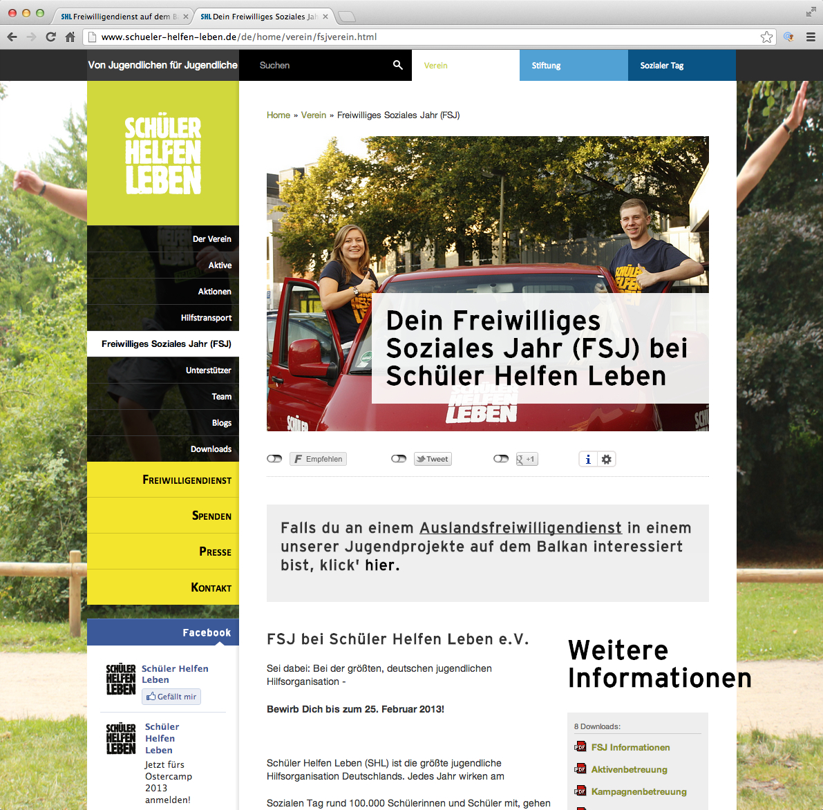 Mehr Infos über den Freiwilligendienst bei uns im Ausland gibt es unter http://www.schueler-helfen-leben.de/en/home/stiftung/freiwilligendienst/freiwilligendienst_auf_dem_balkan.html sowie für das FSJ in Deutschland unter http://www.schueler-helfen-leben.de/de/home/verein/fsjverein.html.