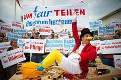 „Fehlende Kita-Plätze, geschlossene Bibliotheken, mangelhafter Nahverkehr – der öffentlichen Hand fehlt das Geld für wichtige Investitionen. Dem stehen gigantische private Vermögen entgegen. Sie müssen wieder an der Finanzierung unseres Gemeinwesens beteiligt werden - mit einer einmaligen Vermögensabgabe und einer dauerhaften Vermögensteuer.” So lauten die Forderungen des Bündnisses. Mit Aktionen soll auf das Thema aufmerksam gemacht werden und darüber informiert werden.